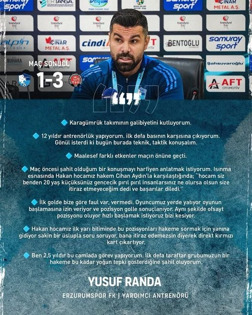 Süper Lig hakemlerinden birisini buraya göndermeleri, adamın …. yeseniz de bu, yemeseniz de dayatması ile verdiği kararlar ve bu gariban kimsesizler takımına havada uçuşan kartlar.